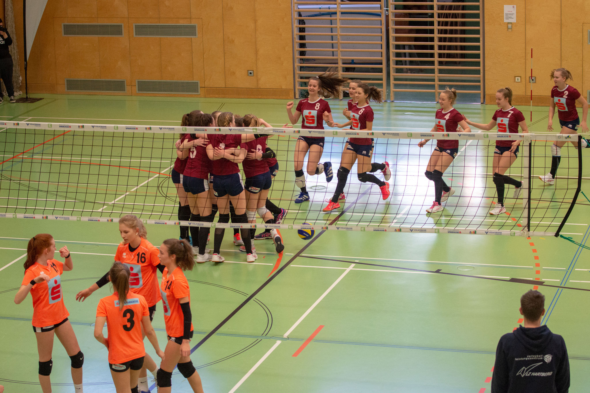 Der zweite Satz begann ausgeglichener, die Mädchen aus Niederösterreich konnten das Niveau aber nicht halten und so setzten sich unsere Mädls bereits nach einem Gleichstand von 5:5 deutlich ab. Wieder war es eine starke Serviceleistung, welche letztendlich ausschlaggebend für den klaren zweiten Satzgewinn von 25:10 war und das Team ins große Finale der Bundesmeisterschaften katapultierte!