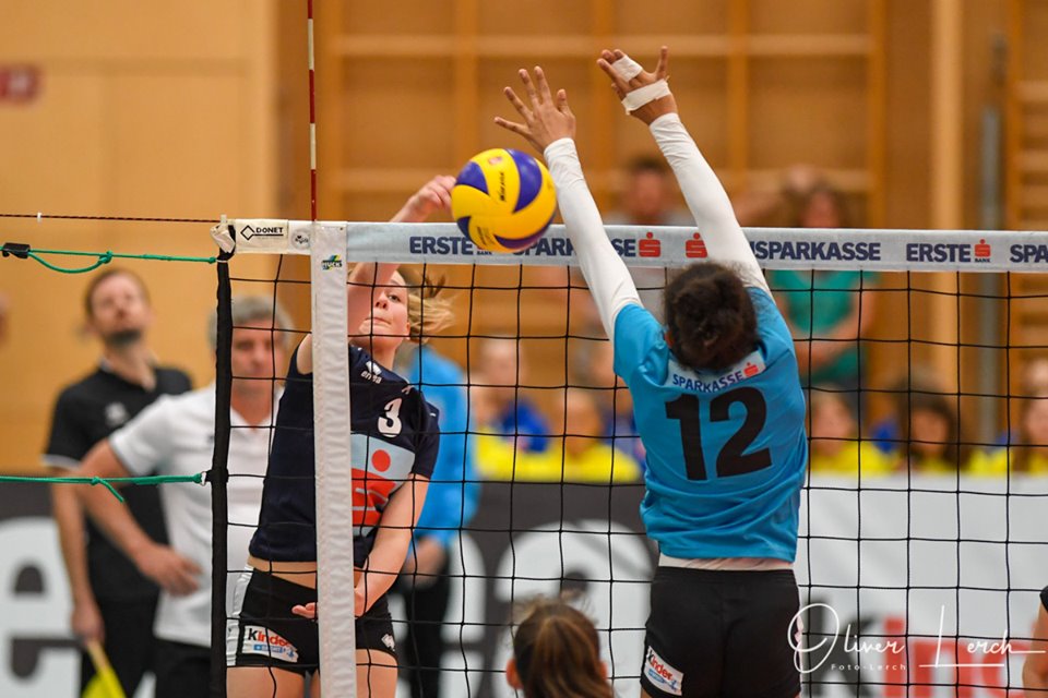 Anpfiff und schon fuhren die Mädls rund um die stark servierende Elena Sammt eine 6:0-Führung ein, die man bis zum Schluss nicht mehr hergegeben hat. Sehr konzentriert, aber mit viel Freude spielten die Mädls auf, verteidigten gut und hatten die zwei stärksten Angreiferinnen der Niederösterreicherinnen mehr als gut im Griff. Diesen wurde kaum eine Möglichkeit zu Punkten gegeben und so gewann man den ersten Satz klar 25:15.
